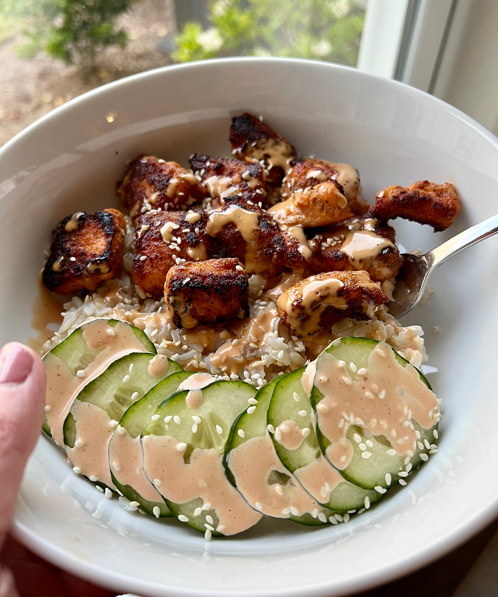 The best advice I can give you when cooking is to step outside your comfort zone and make the recipes you find YOUR OWN. I based this recipe on a video I saw for spicy salmon and I changed it a bunch.. made my own seasoning blend (hence why I don't have measurements) and it turned out better than I ever could have imagined.